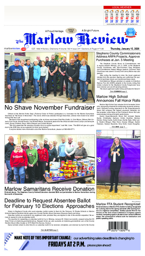 The Stephens County Board of Commissioners met in regular session Monday, Jan. 5, 2026, at the Stephens County Courthouse with Vice-Chairman Kreg Murphree and Commissioner...