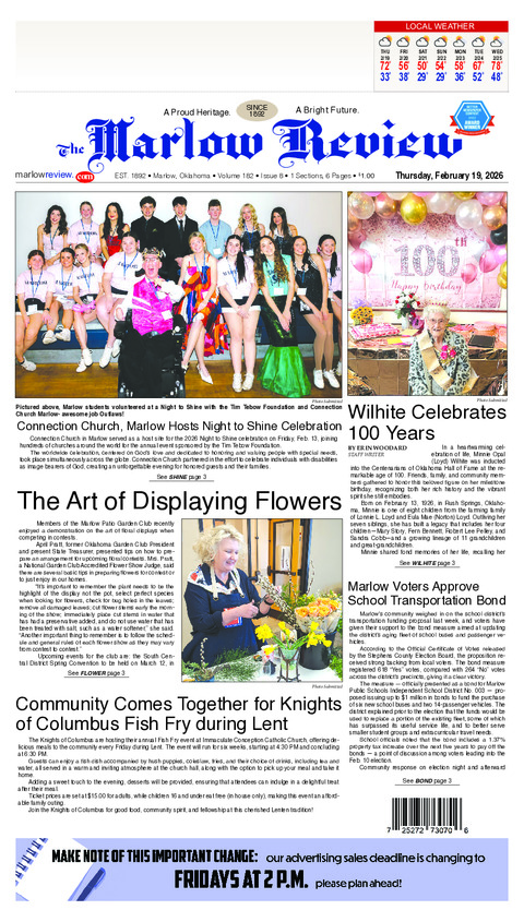 Marlow, OK – A proposed $1 million Transportation Bond appeared on the ballot on Feb. 10, 2026,...