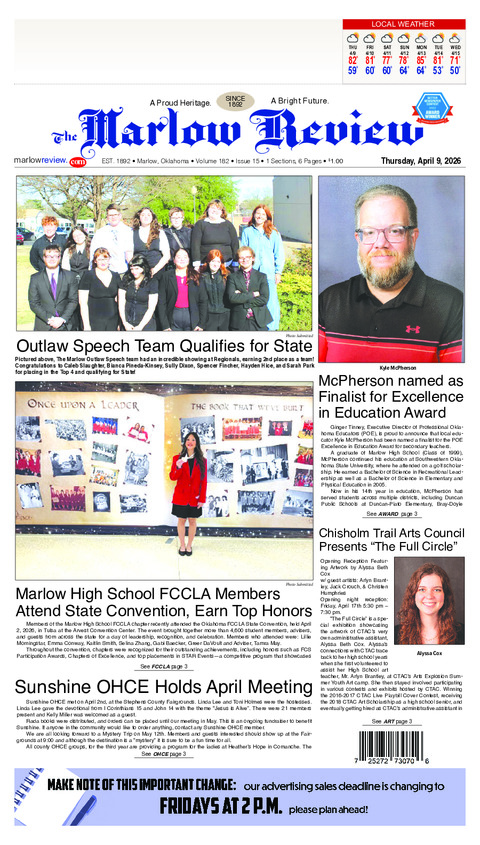 The Marlow Chamber of Commerce will celebrate a year of community achievement and recognize...